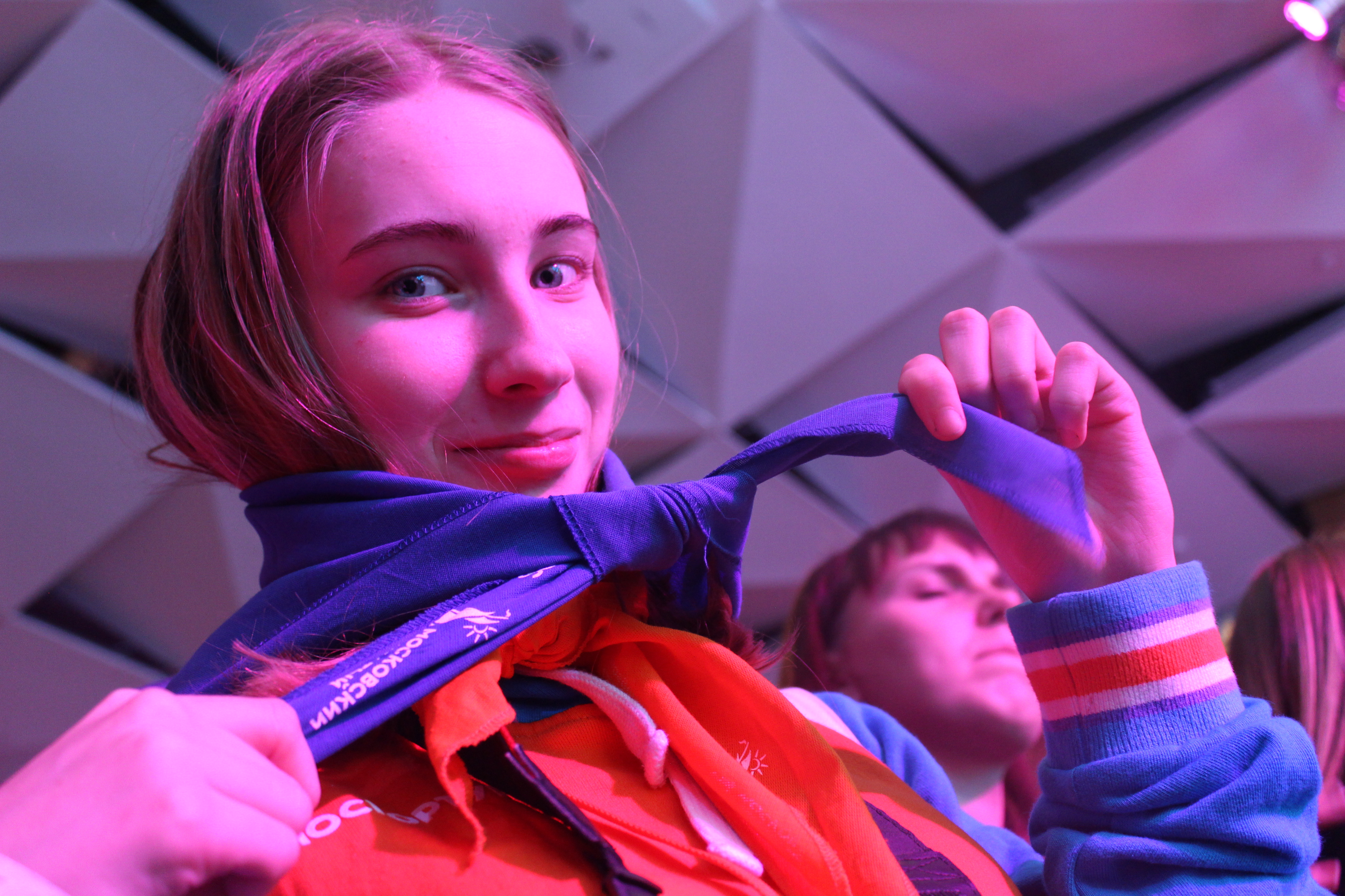 О том, что значит быть вожатым и получить вторую степень мастерства, поделилась обладательница синего галстука, студентка МГУ Елена Галуза: «Знаете, как в университете проходишь определенный этап, так и в жизни. Получение галстука – всего лишь этап. Вожатый – это не человек, который гонится за достижениями, а человек, который занимается с детьми, и для меня на первом месте сам процесс работы с ними».