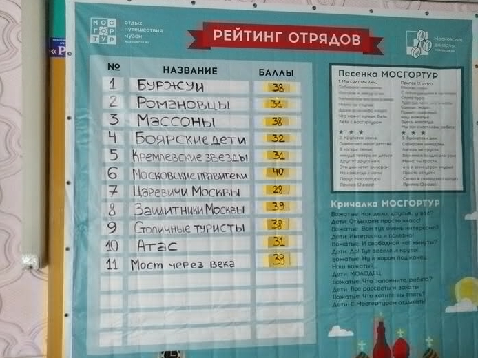 В воскресенье пользователь «Пикабу» выложил пост с отрядной таблицей из крымского детского лагеря. В ней указаны названия отрядов и количество баллов, которые они получили на смене. Как видно из таблицы, на первом месте оказались «Московские правители», а в конце списка – «Царевичи Москвы».