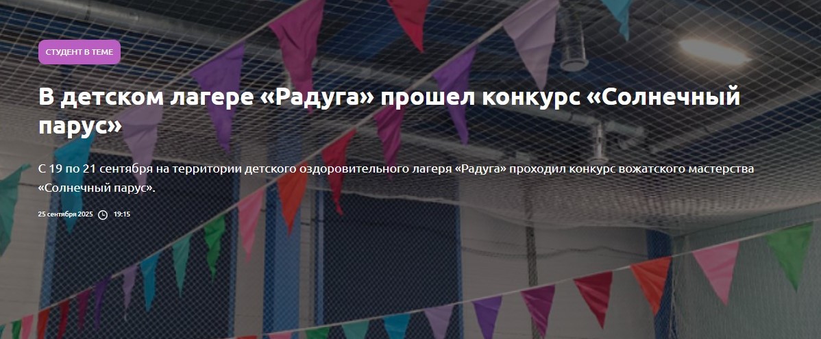 С 19 по 21 сентября на территории детского оздоровительного лагеря «Радуга» прошёл конкурс вожатского мастерства «Солнечный парус».