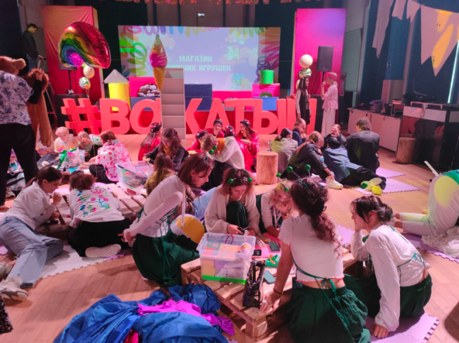 После знакомства прошли первые творческие задания. Первое из них – «Магазин оживших игрушек». Команды должны были придумать рассказ от лица игрушки, которая говорит о своей роли в развитии ребёнка. Помимо этого, историю нужно было сыграть на сцене, создав свой реквизит для выступления.
