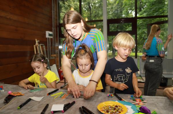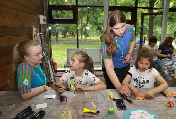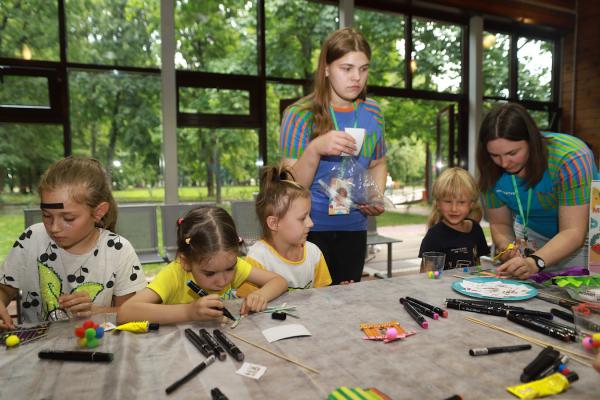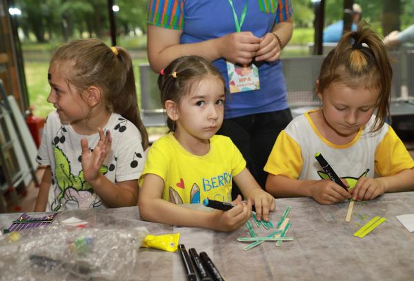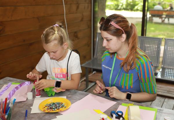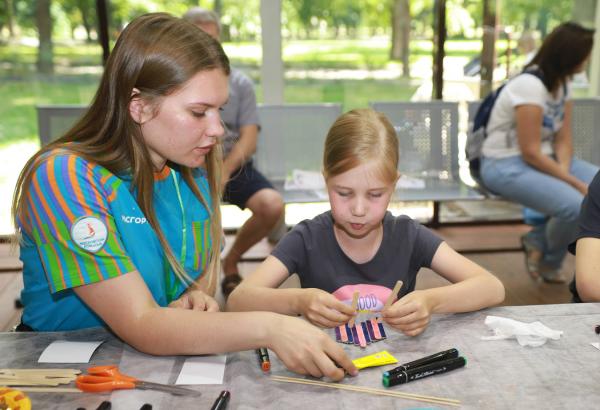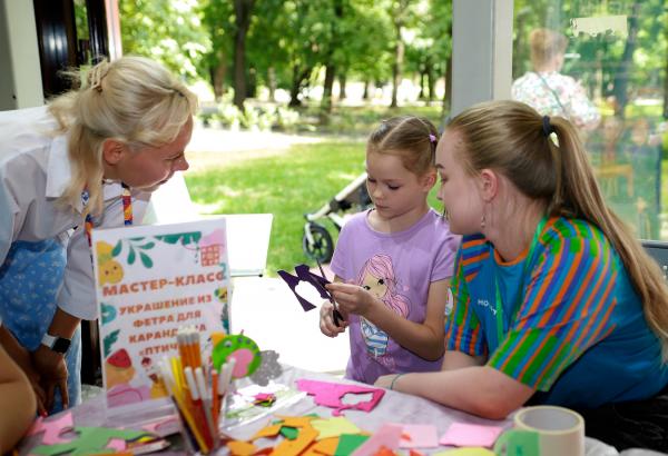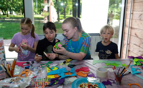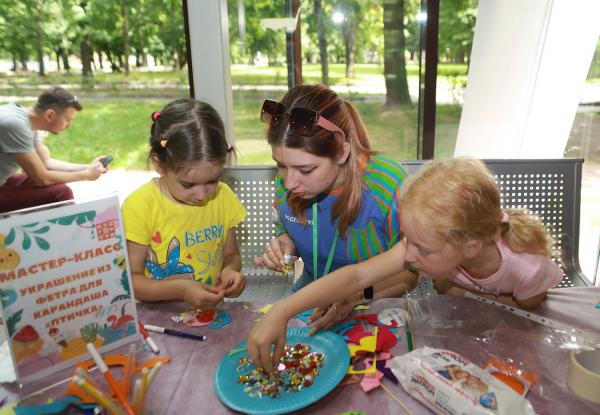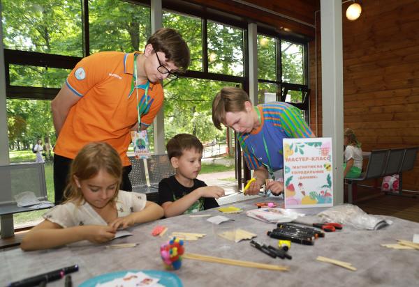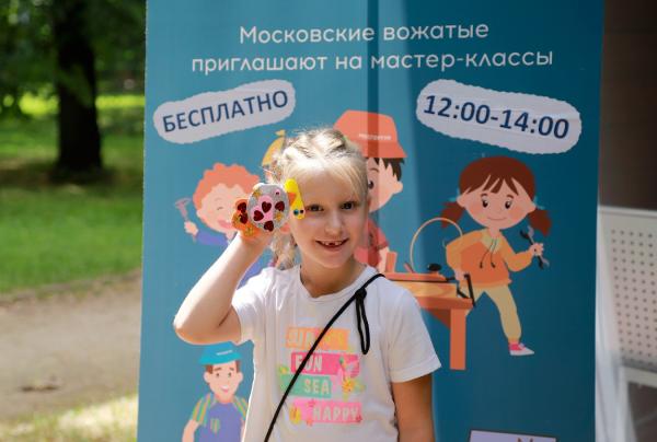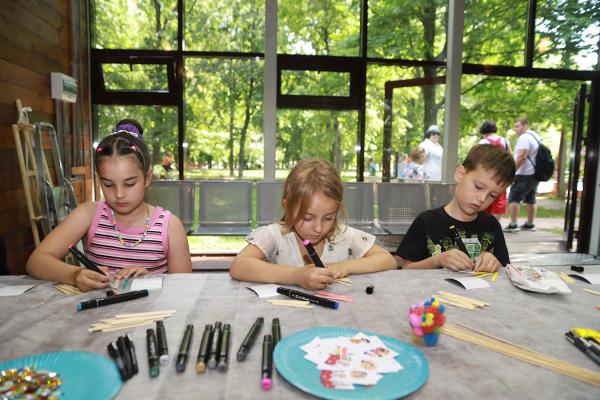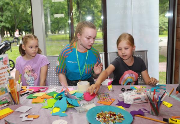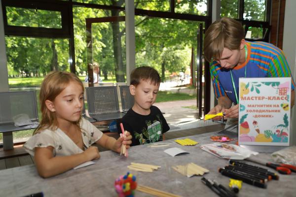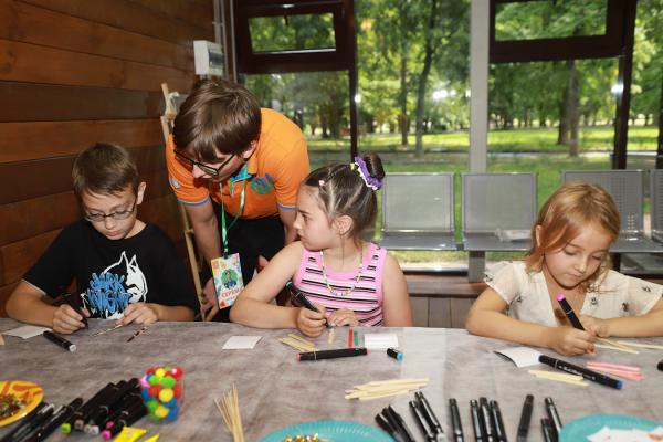 9 июля в парке «Красная Пресня» прошли очередные бесплатные мастер-классы для детей от 6 до 12 лет. Вместе с московскими вожатыми ребята сделали веер из бумаги, магнит на холодильник и фетровое украшение для карандаша.