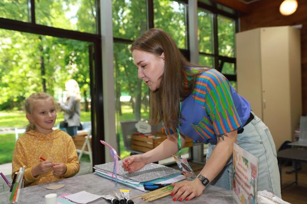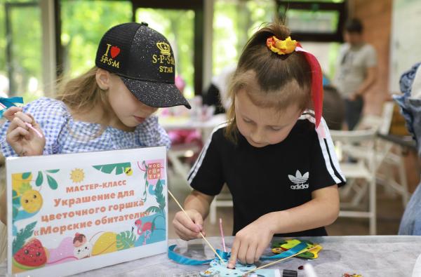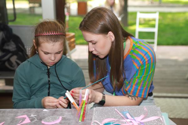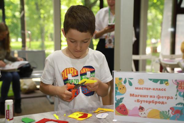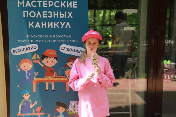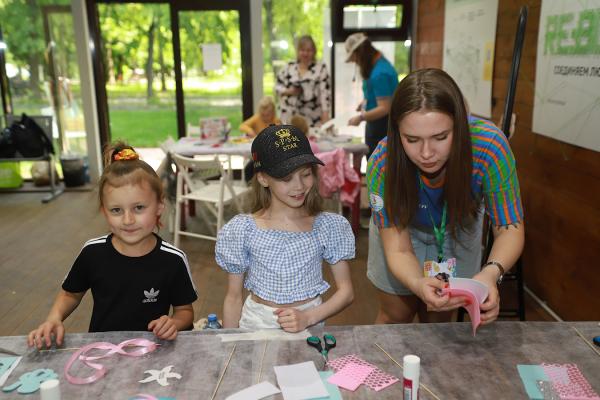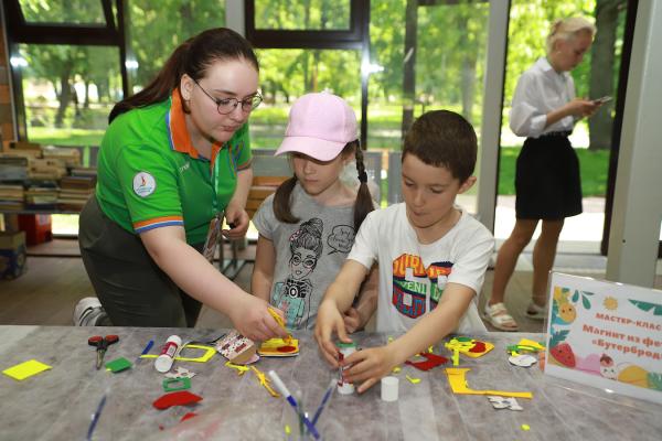 В парке «Красная Пресня» московские вожатые провели мастер-классы, на которых ребята делали магниты из фетра, закладки для книг и украшения для цветочных горшков.