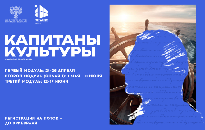 Открылась регистрация на новый поток кадровой программы «Капитаны культуры» для руководителей среднего звена в сфере культуры, искусства и творческих индустрий. Регистрация продлится до 8 февраля.