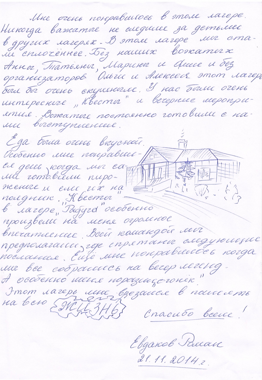 Когда я только узнал, что еду в этот лагерь, то очень расстроился, но я совсем не пожалел, что принял такое решение.