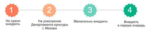 Предложения, получившие статус «На усмотрение Департамента культуры г. Москвы», будут переданы экспертам, после чего будет принято решение о необходимости включения их в стандарт.