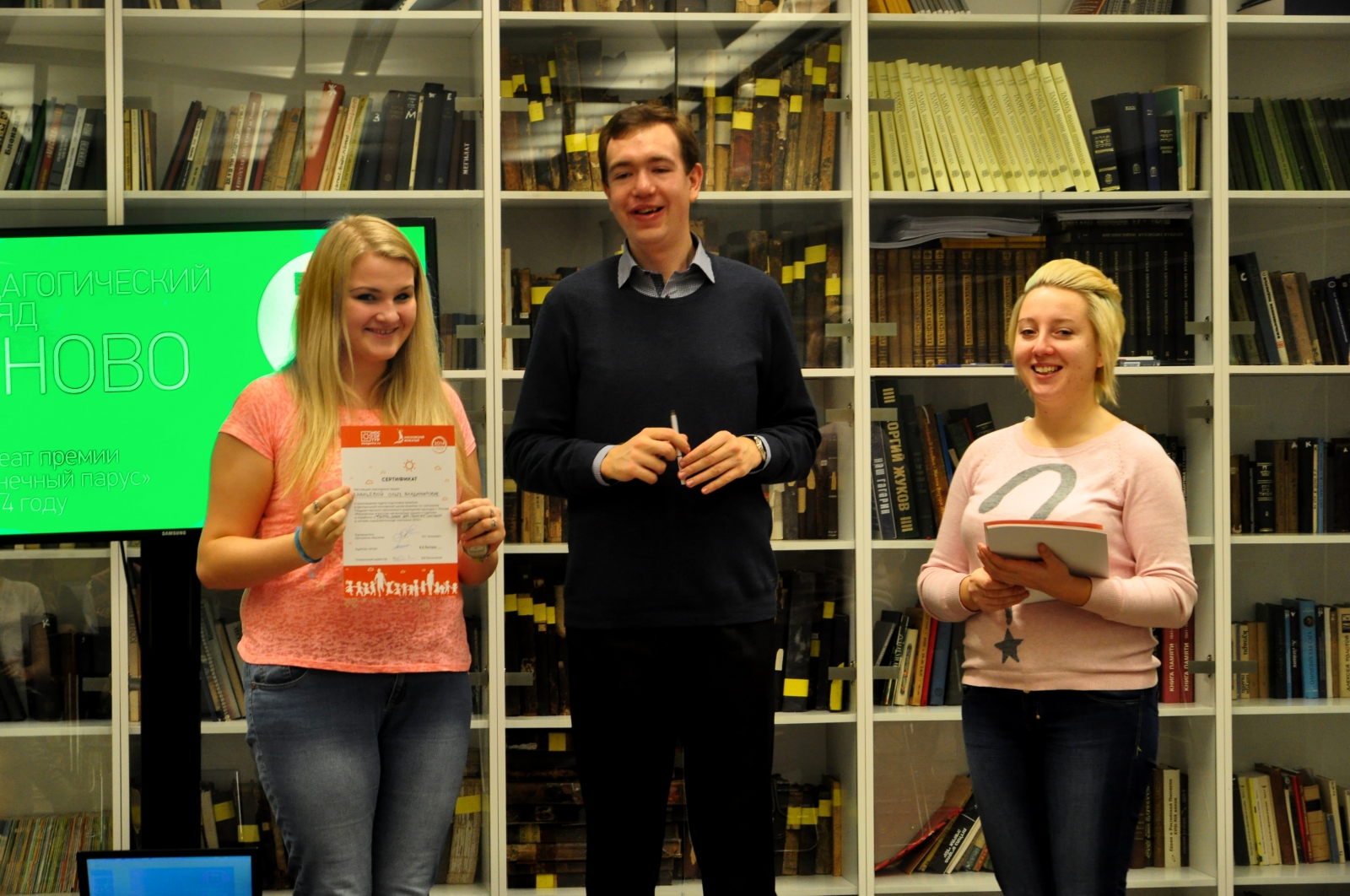По итогам летней смены 2014 года, ГАУК «МОСГОРТУР» наградил педотряд «ЮНОВО» и трех выпускников школы премией «Солнечный Парус».