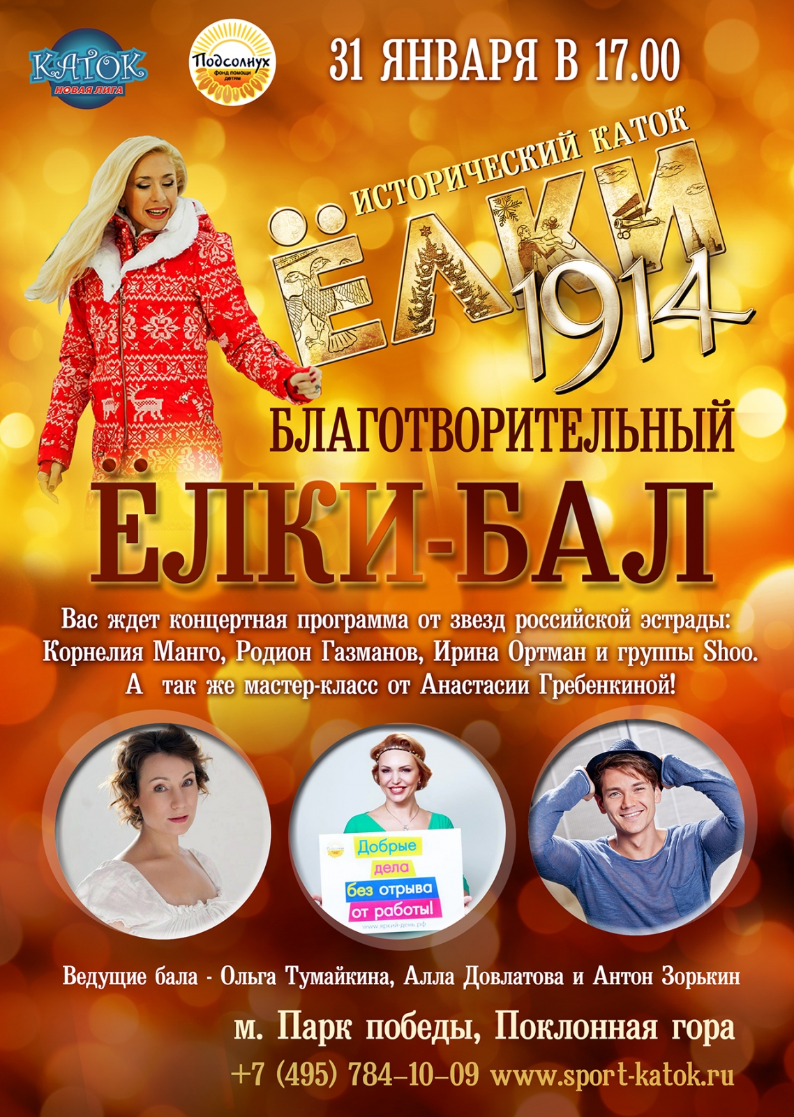 В программе благотворительного бала: мастер-классы по изготовлению шляп и фигурному катанию от Анастасии Гребенкиной, знаменитой фигуристки. А также концертная программа от звезд российской эстрады: на льду выступят Корнелия Манго, Родион Газманов, Ирина Ортман и многие другие.