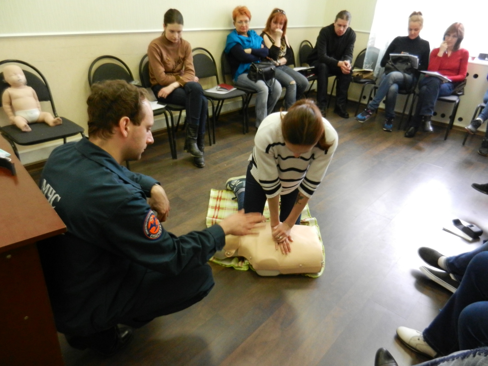 В течение восьмичасового занятия вожатые на практике учились приемам оказания доврачебной помощи и знакомились с алгоритмом действий в случаях, связанных с первой помощью.