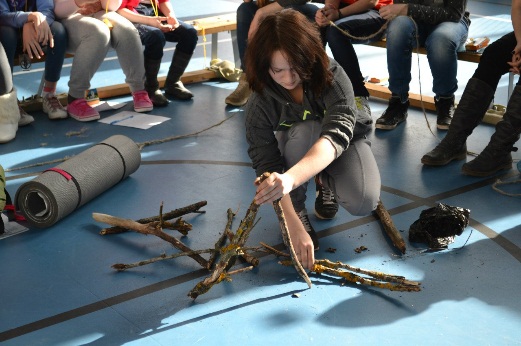 Так, во вторник Саша вместе с юными натуралистами научился ставить палатку, пользоваться компасом и разводить костер. Ребята играли с Сашей в только что установленной палатке, каждый залез в спальник и попробовал уснуть.