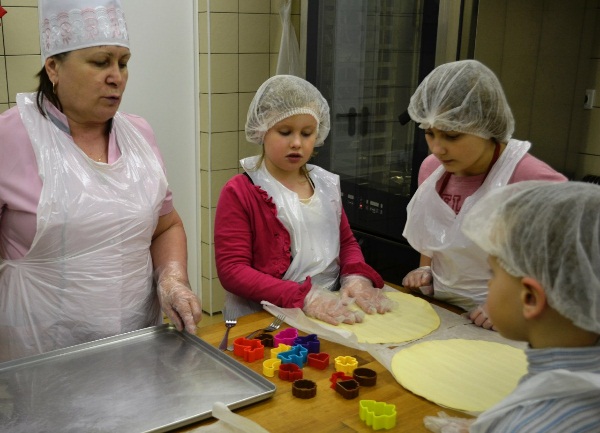 В это время юные повара научились готовить салат в тарталетках, пиццу, фигурные пряники и печенье, узнали, как делают киндер-сюрпризы и как слепить съедобных миньонов и цветы из марципана.