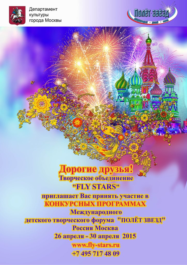 С 26 по 30 апреля 2015 года в России, в городе Москве, район Новая Москва, муниципальное образование Сосенское, пройдет IV международный детско-юношеский творческий форум «Fly Stars», организованный российскими некоммерческими организациями образования и культуры.