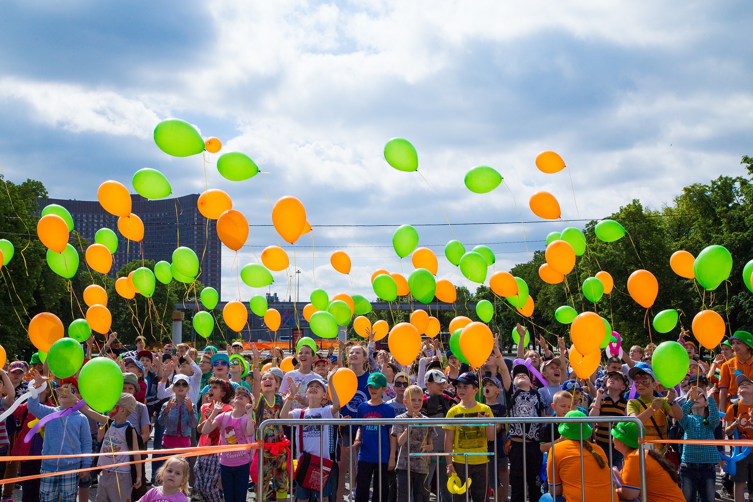 Во время торжественной линейки московские вожатые провели яркую и зажигательную зарядку, а дети загадали желания и отпустили в небо воздушные шары. Музыкальное сопровождение предоставила компания Sound Light Zone.