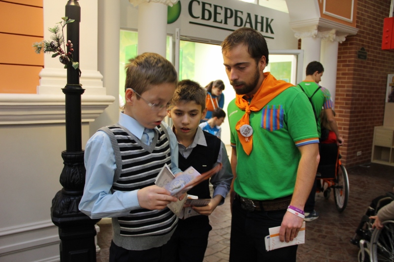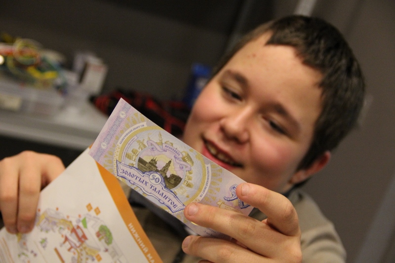 Первым делом все дети направились в «Сбербанк» за маршрутными картами города и первыми своими деньгами, так называемыми «талантами».