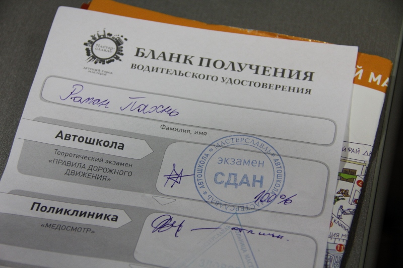 В детском городе все максимально приближено к реальным условиям, а это значит, что нужно и медкомиссию пройти, и сдать теорию в автошколе.