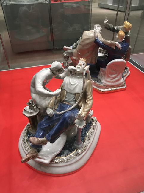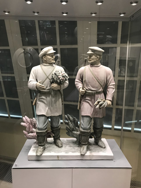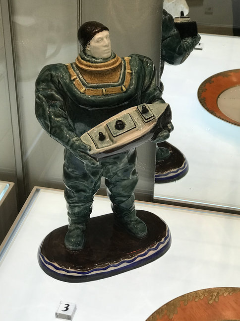 Кроме тематического и жанрового разнообразия, выставка интересна ещё зафиксированными в фарфоре яркими эпизодами истории нашей страны. Например, фигурка водолаза под загадочным названием «Эпроновец». Кто сейчас вспомнит об «Экспедиции подводных работ особого назначения» - созданной в СССР в 1923 году организации для подъёма затонувших судов и подводных лодок?