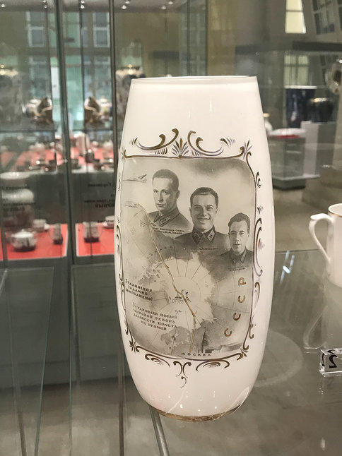 Многие ли назовут тройку лётчиков, осуществивших в 1937 году первый в истории беспосадочный перелёт из СССР в США через Северный полюс? А тогда этим подвигом жила вся страна, тем более, что первая попытка окончилась неудачей. Не случайно рекордное достижение Валерия Чкалова, Георгия Байдукова и Александра Белякова было отражено в памятных вазах и чайных сервизах нескольких фарфоровых заводов страны.