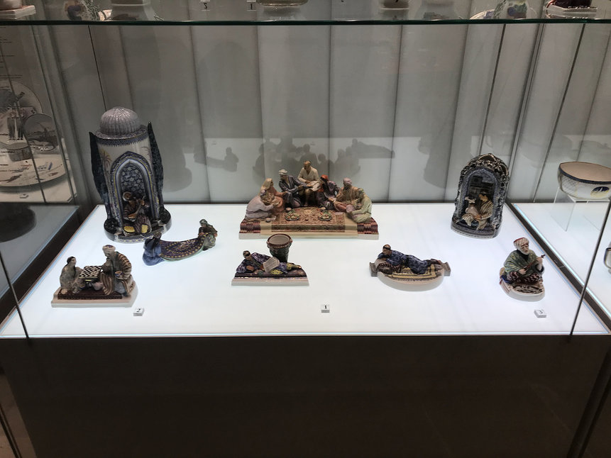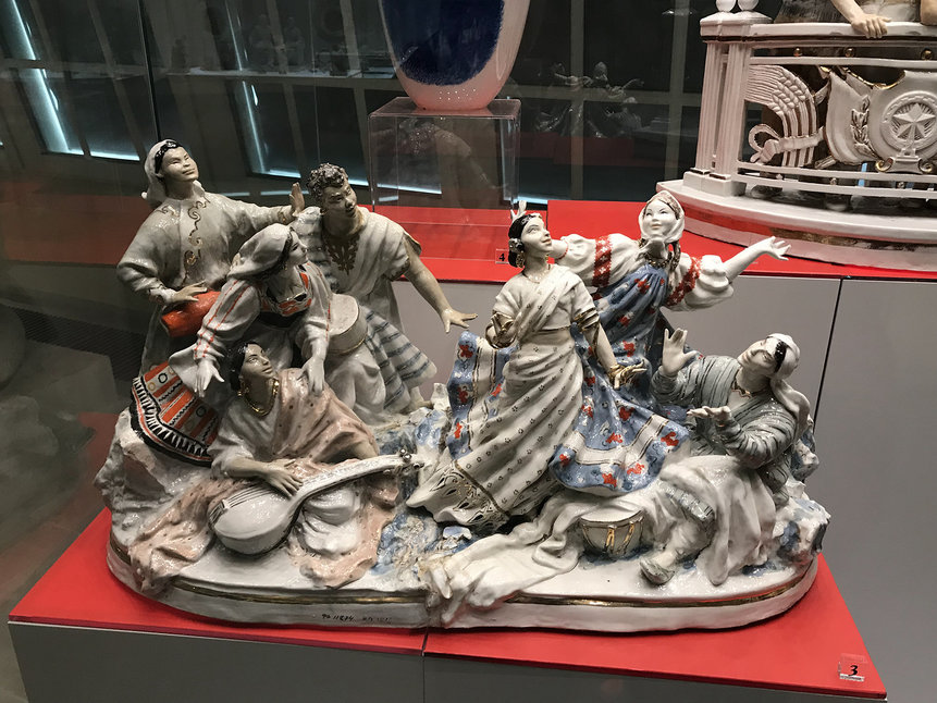 Целый стенд выставки посвящён танцам народов СССР, да и вообще тема национальностей и народностей Советского Союза - одна из излюбленных у фарфористов 1950-1980-х годов.