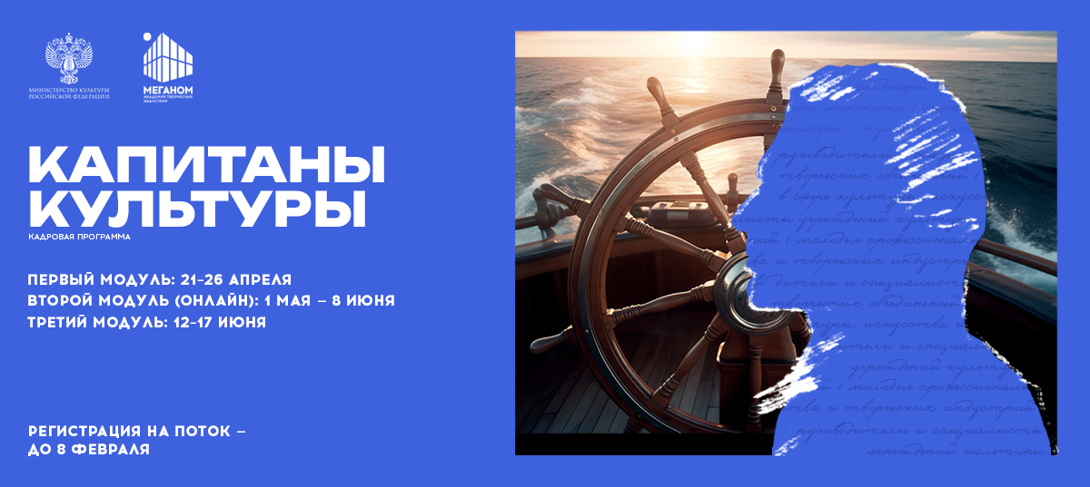 Программа «Капитаны культуры» реализуется в Академии «Меганом» при поддержке Министерства культуры Российской Федерации с 2024 года и направлена на формирование профессионального и личностного развития руководителей среднего звена в сфере культуры, способствует внедрению передовых подходов в управлении и созданию сильного и высокопрофессионального кадрового резерва культурной сферы в России. Среди спикеров и гостей программы — эксперты в области публичных коммуникаций и управления командами, тренеры-консультанты по личному и организационному развитию, бизнес-тренеры, а также руководители профильных министерств и известные деятели культуры.