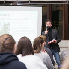 В офисе МОСГОРТУРа «Тотальный диктант» написали 60 человек. Текст для них читал заслуженный артист России Виктор Добронравов.